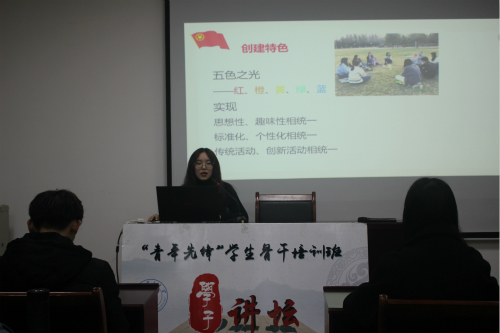 活动伊始,范庆月通过“怎样做好一名学生干部”这一问题,对在场学生骨干提出六点要求。第一,有服务意识和奉献精神;第二,妥善处理学习与工作的关系;第三,要严于律己,在各方面起到模范的作用;第四,树立全局观念,协调好彼此之间的工作关系;第五,积极自我批评,敢于剖析自己,勇于承认错误。第六,树立并维护和谐的人际关系。