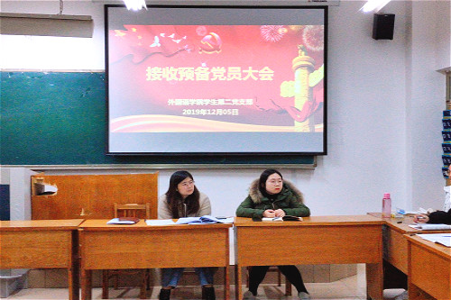 此次会议主要讨论接收孙淼等20名党员发展对象为中共预备党员的问题。 大会主要分为六部分。会议伊始,发展对象汇报自己的思想工作表现情况。孙淼等20位党员发展对象依次进行汇报。在表述过程中,党员发展对象们都表达了自己在发展对象阶段中的思想、工作、学习及生活情况,总结自己的优缺点,表明自身态度和决心;第二部分,入党介绍人发表意见。党员教师讲到,经考察,20位同志政治优良、作风过硬、日常生活中注重对党的基本理论等知识的学习,目前存在的一些缺点就是党性锻炼不足,还需进一步提高政治理论修养,并进一步表达了建议党组织接纳20位同志为中共预备党员;第三部分,与会党员酝酿讨论。在场正式党员同志先后就发展对象们的思想、学习、工作以及生活等方面发表个人意见,对其一年来的表现予以充分的认可和肯定,并指出存在的不足,希望进一步改正;第四部分,采取无记名投票方式进行表决。在党员同志的一致肯定下,20位党员发展对象正式被接收为中共预备党员;第五部分,形成支部大会决议。经学生第一、第二党支部研究,认为20位同志经过党组织的培养,在思想政治素质、工作学习表现等方面,已基本具备中国共产党员的条件,综合政审合格。主要缺点是:政治理论修养有待进一步提高。党组织同意接受20位同志位中共预备党员;第六部分,入党申请人表态。20位同志均表示,会明确自己的努力方向和目标,进一步加强学习,努力工作,时刻牢记自己的使命,向优秀的党员同志学习,不断完善自我。