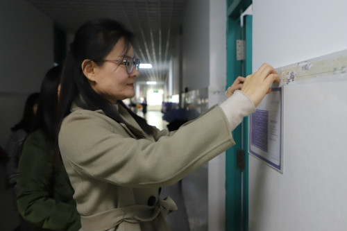 仪式伊始,学院学生在3号、4号学生公寓楼中间集合,学生会成员将定制好的宿舍公约标牌分发给各宿舍舍长,邢琛详细介绍标牌的张贴方法。随后,周丽妲、邢琛走访学生公寓,帮助学生将公约标牌张贴于宿舍门右侧,并鼓励各宿舍成员继续努力,创造良好的学习生活氛围。走访过程中,周丽妲、邢琛还与学生进行深入交流沟通,了解其学业情况,查看宿舍供暖、卫生状况,嘱咐各宿舍成员遵守宿舍相关规章制度,注意宿舍用电安全和卫生整洁,提高安全意识,不违规使用大功率电器,希望同宿舍之间要互相帮助,互相包容,打造和谐的宿舍文化,形成良好的宿舍之风。