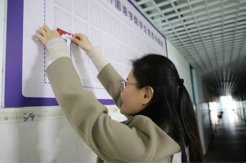 最后,周丽妲和学生党员代表将定制的党员先锋牌置于学生公寓楼大厅内学生党员先锋岗展示墙上。至此,此次宿舍公约挂牌仪式顺利结束。