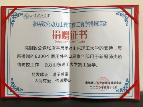 感谢致公党淄博市委张店区基层委对学校的慷慨捐赠