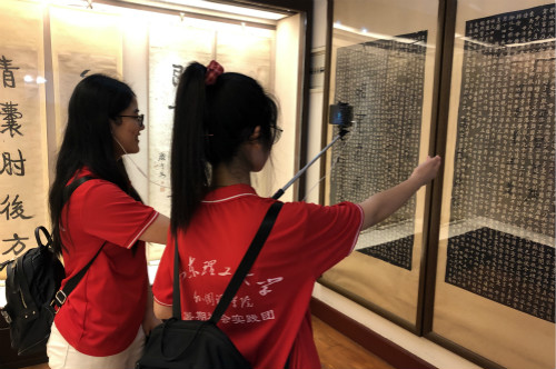 随后,孙立和王晓萍登上石楼台阶,带领学生走进故居进行四部分的参观。第一部分是分序厅,康有为先生的铜像出现在学生们眼前,学生们自觉全体起立向康有为先生敬礼。第二部分是生平展厅,孙立展厅内的图文向学生详细讲解康有为先生接触西学的历程、维新之路和流亡经历。学生们认真倾听,积极提问,课堂气氛活跃。第三部分是康有为先生的书房、客厅和卧室,王晓萍结合当时的时代背景向学生们介绍各件家具,极具特色的洗漱台、书柜、床榻等令学生们啧啧赞叹。第四部分是书法艺术陈列馆,王晓萍带领学生朗读字画上所题的大字,感受康有为先生的思想精髓和文物的研究价值和历史价值,一件件先生流亡海外时收藏的珍品更是引起学生们的阵阵惊叹,同时,他们还感受到先生一生坎坷奋斗、孜孜不倦的不懈追求,了解到革命前辈艰苦奋斗的历程和舍身忘我的高尚情操,理解今天的美好生活的来之不易。至此,此次“走进康有为故居”爱国教育直播课结束。