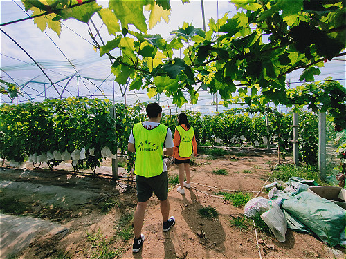 为深入了解烟台省龙口市七甲镇圈朱家村农业发展乡村振兴的优秀事迹,学习并宣传当地的经济特色及发展经验,7月27日下午,WilliamHill中文“蒲公英”社会实践团来到圈朱家村参观当地的葡萄种植基地。