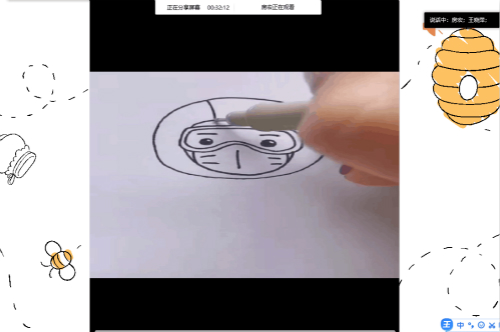 最后,王晓萍通过视频向学生们展示身穿防护服的医护人员的简笔画法,她讲到,“医护工作者是我们的英雄,他们日夜奋战,舍生忘死,不负重托,同时间赛跑,与病魔较量,为疫情防控工作做出了重要贡献”,学生们认真倾听,不禁心生敬意,积极响应。最后,王晓萍通过视频和图片展示医护人员、消毒喷雾、蝙蝠、肥皂等形象的具体简笔画步骤,她还提到,疫情当下,作为一位合格的国家公民,大家须从每一个细节做起,严格、规范地保护好自己,勤洗手、戴口罩、不聚众,保护好自己就是对社会的最大贡献、对家人最大的安慰。学生们认真临摹,专心致志。一幅幅精彩的作品跃然纸上,学生们迫不及待的将自己的作品向镜头前的实践团成员展示,他们用稚嫩的线条向奋斗在疫情一线的英雄们致敬,用画笔为抗“疫”助力,表达自己对祖国的热爱。