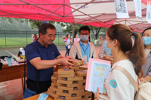 随后,新生们在纪念品发放处领取学校准备的纪念品。为帮助大一新生尽快适应新环境,建立新生与学长学姐沟通的桥梁,工作人员在迎新现场发给新生每人一封信,内容主要包含所在专业学长学姐对他们学习、生活等方面的建议和鼓励,字里行间流露出学长学姐对新生的关心与祝愿。