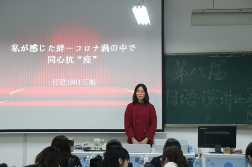 命题演讲环节中,七位选手依次围绕我心中的“新时代”—面向2030或同心抗“疫”发表日语演讲,选手沉着冷静,表现自如,语言流利,展现出自己深厚的语言功底与良好的精神风貌。