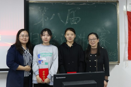 比赛结束后,各位老师对六位选手的精彩表现给予充分肯定,并指出他们在语音语调与现场表现等方面的不足,提出自己的建议。经过一番激烈角逐,最终,毛鑫臣获得一等奖,杨佩佩、牟春雨获得二等奖,崔珂萱、贾萍萍获得三等奖。