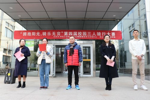 随后,滕亮发表讲话,他讲到,希望通过此次活动丰富学生的校园生活,在学习之余感受骑行的乐趣,热爱运动,热爱生活,保持愉快的心情和乐观向上的生活态度,提高心理健康水平,从而促进学生德、智、体、美、劳全面发展。此外,他叮嘱参赛选手注意安全,并预祝各团队取得优异成绩。周丽妲在讲话中号召各参赛选手在比赛过程中秉承“安全为先,健康骑行”的原则,积极做到爱护单车,互帮互助,遵守秩序,随即,宣布比赛正式开始。