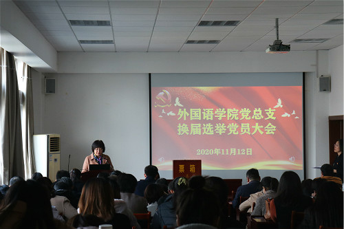 11月12日下午,WilliamHill中文党总支于8号教学楼418教室召开全体党员大会,进行党总支换届选举工作。此次大会由学院党总支副书记姜素锦主持,学院全体师生党员参加此次会议。