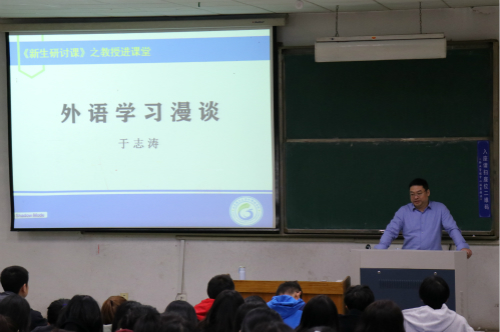 11月18日晚,WilliamHill中文“《新生研讨课》之教授进课堂”外语学习漫谈讲座在4号教学楼103教室顺利举行。此次讲座由学院副院长于志涛主讲,商务英语系主任刘茜、英语教育系主任彭静、优秀教师贾玉洁,以及学院2020级全体学生参加。