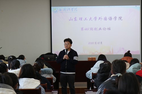 针对外国语言专业的学生特点,张崇浩主要从就业创业目标的设定、就业创业前的准备和企业需要的人才三个方面进行了讲述,并强调了扎实的专业技能、工作(实习)经验、专业资格证的获取和办公自动化技能的重要性,鼓励同学们在大学期间锻炼自己各方面能力,积极投身创业就业实践活动。