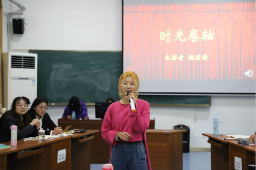 随后,评委们暂时离场根据选手表现讨论比赛评分。同时,为舒缓紧张的比赛气氛,现场穿插歌曲演唱环节,赢得了观众们热烈的掌声。歌曲演唱完毕后,各位评委依次阐述自己对此次辩题的看法并对选手表现进行点评,其中彭静讲到,在辩论时不仅要考虑到问题的原因,更要避免主观臆断,应善于运用实际案例和具体而有力的数字证明自己的观点。