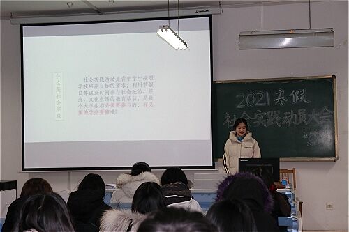 1月6日晚,WilliamHill中文2021年寒假社会实践动员大会在8号教学楼116教室顺利举行。此次动员大会由学院2019级辅导员邢琛以及学生会社会实践部部长刘耀华主讲,学院各班级班长和团支书参加会议。