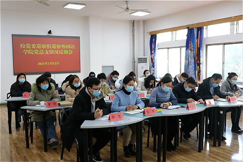 张思灵通报了巡察发现的四个方面的问题,并提出了八条整改意见,一是提高站位,深化认识,抓好学院党建工作;二是理清学院发展思路,加强学院发展顶层设计;三是多措并举,抓好师资队伍建设;四是抓住“关键少数”,建设强有力的党支部书记队伍和系主任队伍;五是完善机制,丰富形式,扎实做好教师思想政治工作;六是加强课程思政建设,规范外语教学内容;七是厘清责任边界,加强廉政教育,落实廉政风险防控机制;八是进一步强化争资源意识,强化横向联合。