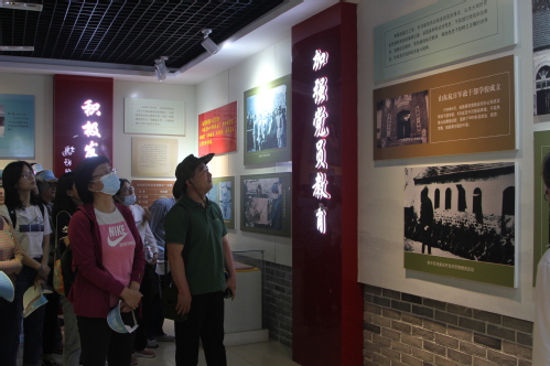 第一站,学院党委奔赴至中国革命战争时期最重要的三大老革命根据地之一沂蒙山根据地,参观了中共中央山东分局旧址,大众日报创刊地,八路军山东纵队旧址,孟良崮战役陈毅指挥所旧址等众多红色教育基地,党员教师们沿着历史足迹追忆红色革命历程,深入学习中国共产党领导沂蒙人民开辟和巩固沂蒙抗日根据地、军民团结夺取解放战争胜利所谱写的壮丽篇章,深刻领会了吃苦耐劳、自强不息、无私奉献的沂蒙精神。