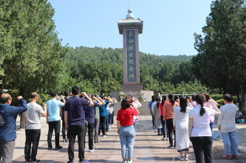第三站,党员教师来到文峰山下参观鲁南革命历史纪念馆,纪念馆共分“赵镈事迹陈列展馆”和“理想信念教育展馆”2个展厅,展示了鲁南人民在各个革命时期的斗争历史。随后,党员教师们在革命烈士纪念碑前向革命烈士敬献花篮,深鞠三躬,深切缅怀在战斗中牺牲的革命前辈,并集体重温入党誓词,以坚定有力的誓言,表达不忘初心、砥砺前行的信念和决心。