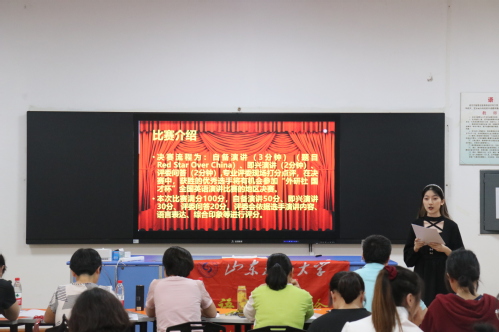 比赛伊始,主持人简要介绍比赛规则和比赛流程。此次比赛共分为自备演讲、即兴演讲、评委问答三个环节,并采取评委现场打分点评的方式,既考察选手们的英语水平,也检验其心理素质。比赛正式开始,参赛选手依次进行自备演讲,并接着通过上场前五分钟的抽题、准备进行即兴演讲。选手们经过精心准备,让丰富的内容在短短五分钟的时间内得到展现,思维缜密,语言表达严谨、清晰,仪态端庄大方,充分阐述了“Red Star Over China”这一主题,并结合个人观点对所抽题目进行充分表述,展现出良好风貌和扎实的语言基础。