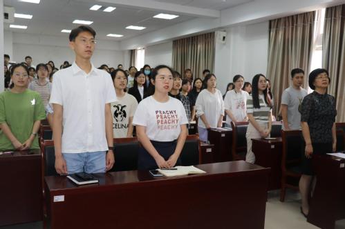 仪式伊始,全体人员起立,在庄严肃穆的氛围中奏唱国歌。随后,入党积极分子代表李慧茹发言,她代表全体入党积极分子感谢学校、学院党委的关心和帮助,给予学生学习交流的平台,感谢老师同学们的肯定与支持,鼓励学生积极响应党的号召,成为有真才实学又有坚定共产主义信念的思想上进分子,并向党组织做出承诺:一、在党校培训中全心投入,明确奋斗目标,端正学习态度,坚定理想信念,自觉用党员的标准要求自己;二、不断学习党的理论知识,提升政治修养,遵守纪律,服从管理,尊重老师,积极交流,不辜负组织的期望;三、在生活中践行社会主义核心价值观,在集体生活学习中争优创优,以更高的标准向党组织靠拢。