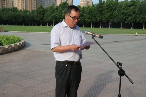 在国旗下,物理与光电工程学院学生代表王慎浩做主题演讲,他号召同学们不忘初心,增强责任意识,树立远大理想,敢于担当,拼搏进取,发奋图强。