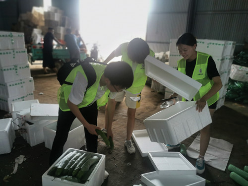 首先,实践团来到三元朱村的蔬菜基地进行参观学习。通过实践前期的讨论准备工作,实践团对三元朱村的产业模式和创新技术有初步了解。近年来,在党的领导下,寿光全方位推动理念创新、技术革新、模式更新。立足当地产业优势,优化产业结构。从“冬暖式蔬菜大棚”带动的绿色革命开始,再到如今的微机控制、电脑控制培养作物,以及引进、试验、推广了近20类300余个作物新品种,产业优势不断加强。并积极探索“文化+农业+旅游”发展模式,依托农业优势建设起村史博物馆、农知大道、第五代高科技温室示范园等景点。在参观过程中,成员们与当地菜农积极交流并体验如何利用新技术检验苦瓜等蔬菜的质量,最后还帮助农民把品质没有问题的苦瓜装箱。当被问到对现如今生活的感悟,菜农们纷纷感慨科技的发展和国家的进步所带来的当今生活的变化以及未来在政策指引与党的领导下,更加有信心建设繁荣乡村宜居乡村。
