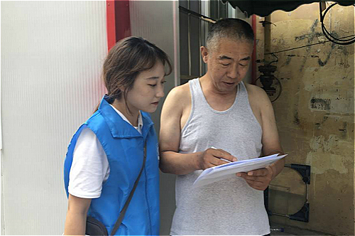 随后,第二组实践团成员来到山东省烟台市清洋街道社区,采取社区街头调查的方式,使老党员们填写实践团提前准备的纸质版调查问卷,以便了解他们的需求以及存在的问题。与此同时,实践团成员与老党员们进行暖心交流,更全面更深入地了解老党员们的实际需求。