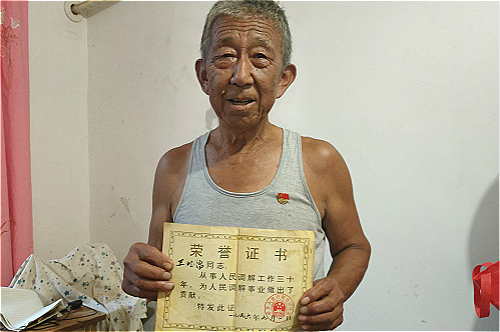 随后,实践团成员与老党员进行深入的交流并了解到他于1976年加入中国共产党。年轻时他是村支部书记,为建设富裕乡村而努力,后来从事民事调解工作三十余年。他激动地向实践团成员展示了自己的荣誉证书。“我这辈子做的最正确的事就是加入中国共产党,几十年来,亲眼见证国家从艰难走向辉煌的过程,以前生活贫穷,温饱都难以解决,现在在党的领导下,国家发展、社会进步。”他表示,虽然已经退休,但在村子建设上他仍有参与。