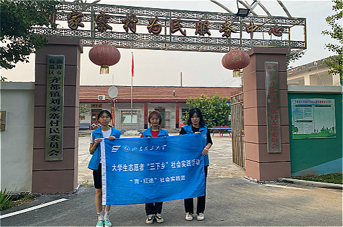 图为实践团成员在刘家寨村为民服务中心门口合影
