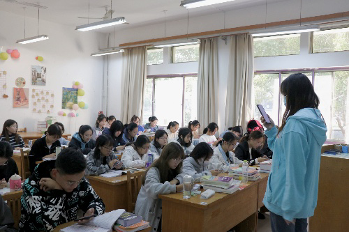 活动伊始,同学们根据朗读协会事先精心准备的晨读内容,在活动领读者的带领下,一起整齐、大声地朗读需要跟读的内容。在整个活动的过程中,同学们十分认真投入地练习着自己的口语发音,朗读声此起彼伏,学院中充盈着浓厚的学习氛围。活动结束后,各专业同学利用余下的宝贵时间再次对阅读内容进行了记忆。最后,各领读者表达了对大一新生们的美好祝愿,希望各位大一新生可以用好晨读时间努力充实提升自己。
