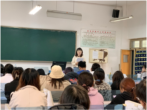 活动伊始,我院听说教研室主任牟晓青教授在8号教学楼116教室进行讲话,向各参赛选手讲述活动的相关流程:参赛选手按照名单顺序,依次到218教室进行现场表演,候场区同学可自行选择在教室安静候场或到附近走廊进行赛前排练。随后,牟晓青教授为各比赛选手送上祝福,比赛帷幕正式拉开。