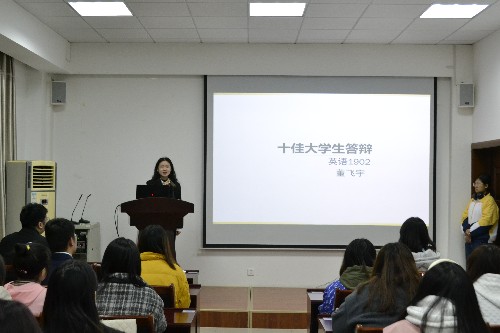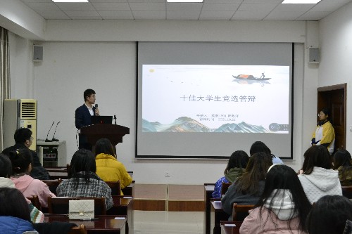 随后,会议进行第一项:4名十佳大学生候选人按顺序依次上台进行答辩。答辩人围绕专业成绩、williamhill、获奖情况、社会实践、身心发展等方面进行个人介绍。候选人们所展示出的优秀履历,尽显理工大“五有”人才的气质与自信,展现出优秀学子努力上进、积极进取的精神面貌,为外院学子树立了优秀的学习榜样。