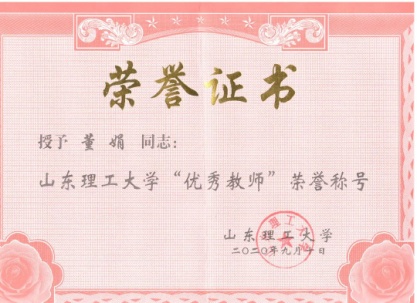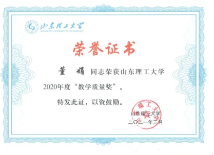 从事教学行业多年,董娟深知教学需要改革,也身体力行地坚持改革,不断提升教育理念。近年来她先后主持山东省教育教学课题“文化走出去”战略下朝鲜语专业教学模式重构研究(2018)、williamhill中国教改项目“商务职场韩国语”教材研究与开发项目(2020)、williamhill中国高等教育研究项目“双一流”背景下的朝鲜语专业发展路径研究(2018)等多项厅校级教学研究项目。