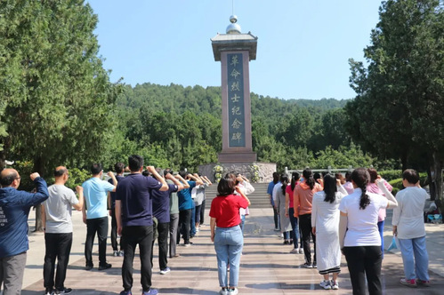 第三站,党员教师来到文峰山下参观鲁南革命历史纪念馆,纪念馆共分“赵镈事迹陈列展馆”和“理想信念教育展馆”2个展厅,展示了鲁南人民在各个革命时期的斗争历史。随后,党员教师们在革命烈士纪念碑前向革命烈士敬献花篮,深鞠三躬,深切缅怀在战斗中牺牲的革命前辈,并集体重温入党誓词,以坚定有力的誓言,表达不忘初心、砥砺前行的信念和决心。