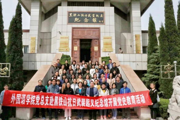 为庆祝中国共产党建党100周年,深入开展党史学习教育,进一步坚定党员理想信念,2021年3月31日下午,我院党总支组织学院领导班子、科级干部、支部书记和部分师生党员以及教师代表赴红色教育基地黑铁山抗日武装起义纪念馆开展党史教育活动,缅怀革命先烈。