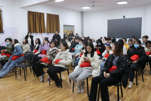 随后,邢琛通过游戏的方式让参会人员感受母亲妊娠期生活的不便。通过萝卜蹲以及弯腰捡东西的方式,使学生体验妊娠期母亲日常生活。列举多个事例介绍试管婴儿的诞生,一张张试管婴儿的留影照片让我们感受到产妇身体损伤和精神压力。
