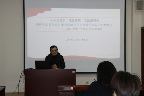 本次理论宣讲会,我院邀请校宣讲团成员、马克思主义学院康兆庆教授作主题为《从历史逻辑、理论逻辑、实践逻辑来理解党的百年奋斗重大成就与历史经验的决议的时代意义——学习党的十九届六中全会精神》的理论宣讲报告。