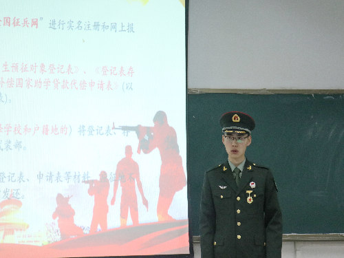 此次宣讲会旨在加强我院学生对大学生征兵入伍相关政策的了解和对国防力量的认识,有利于增强学生对军人的尊重和保家卫国的责任感和使命感,有利于激发学生参军入伍、报效祖国的热情,为国家贡献自己的青春力量。(撰稿:赵洁 李晨 刘瑛 摄影:刘瑛)