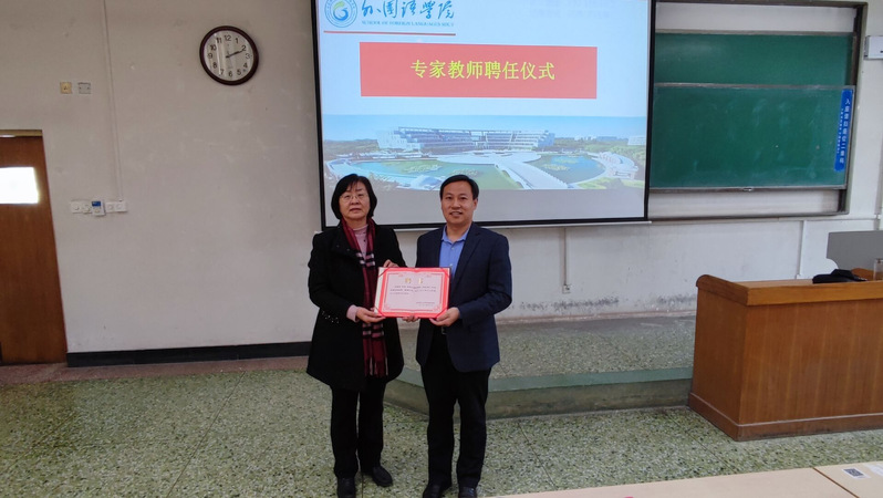 12月31日下午,我院在4号教学楼205教室举行专家教师聘任仪式。外院党总支书记李静、专家教师刘洋、外院部分优秀教师及2019级英语师范类部分学生加此次仪式。