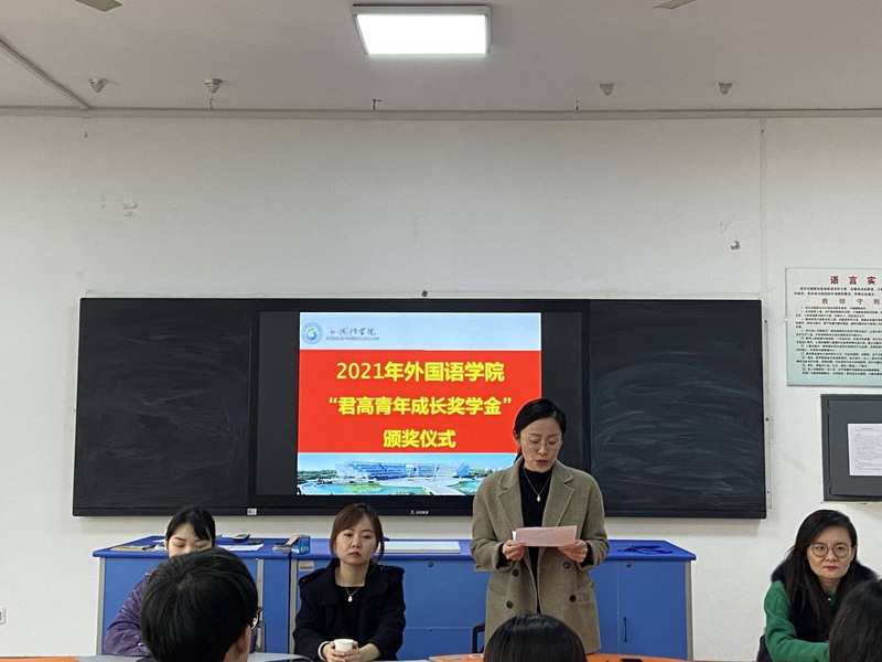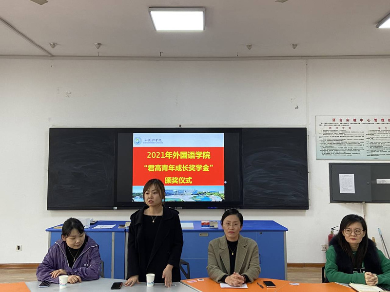 1月7日下午,我院在8号教学楼218教室举行“君高青年成长奖学金”颁奖仪式。山东君高教育咨询有限公司淄莱区域经理李雪畅、学院党委副书记姜素锦、团委书记周丽妲出席此次颁奖仪式,奖学金获得者及学院各年级学生代表参加此次颁奖仪式。仪式由学院21级辅导员马梓轩主持。
