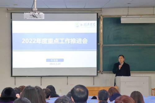 会上,院长牛书田简要回顾了去年学院的建设发展情况,对学院寒假期间的主要工作做出深刻点评,并作了2022年度重点工作部署。牛书田强调,学院今年发展以“十四五”规划为切入点,教职工要明确学校、学院发展定位,坚持以“十四五”规划目标为导向开展各项工作。他对学院新学期的发展寄予深切期望,提出学院规划、师资队伍建设与教师发展、教学科研工作、研究生教育等八项重点工作并进行详细部署。最后,牛书田向全体教职工提出了“终身学习、共同发展”的希望,褒扬了“路虽远行则将至,事虽难做则必成”的拼搏品质,鼓励教职工站在学院发展角度,以“功成必在我”的精神,积极投身学院教学、学科建设工作。