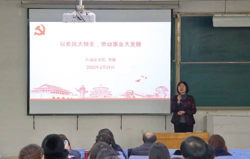 党委书记李静作了题为“以作风大转变,带动事业大发展”的工作报告。她总结了2021年学院党委主要工作,从担当作为、形式多样、对标建设、党建引领四个方面对学院党政建设予以充分肯定。同时,李静带领全体教职工学习了校党委三届七次全委(扩大)会议精神,传达了吕传毅书记提出的不良作风在我校的8种表现,要求全体教职工逐条分析,自我反思,改进作风,狠抓落实。她对新学期全体教职工提出以下要求:一要进一步提高政治意识,增强“四个意识”、坚定“四个自信”、做到“两个维护”,为党育人、为国育才。二要提高安全意识,加强生命安全、实验室安全、设施设备安全、意识形态安全、网络安全、交通安全管理力度,把好安全关,把好生命关。三要强化师德师风建设,全体教职工严格遵守《williamhill中国教师行为七项规定》,立足岗位,担当作为,立德正身,行为示范,为共推学院改革发展新局面贡献力量。