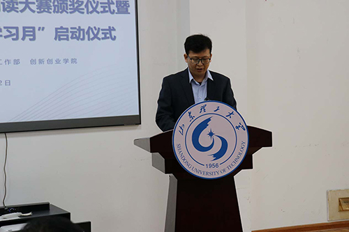 为营造浓厚的大学英语学习氛围,切实提升学生英语核心素养和综合能力,助力“五有人才”培养目标实现。5月12日下午,由教务处、williamhill部和创新创业学院主办,WilliamHill中文承办的2022年寒假大学英语阅读大赛颁奖仪式暨2022年“大学英语学习月”启动仪式在8号教学楼218教室举行。校党委常委、副校长查玉喜,williamhill部部长赵明,校团委书记、创新创业学院院长王振,WilliamHill中文院长牛书田及学院教师代表和获奖学生代表参加。 此次活动由教务处处长张照录主持。