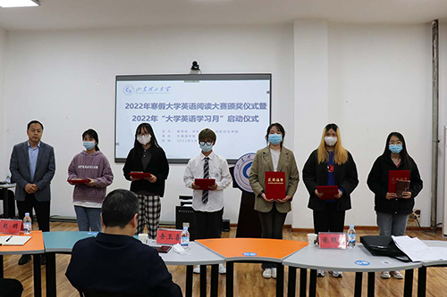 查玉喜对2022年寒假大学英语阅读大赛获奖同学表示祝贺,对同学们积极主动学习英语的精神和出色的竞赛表现给予肯定,向长期致力于学生成长和英语教学的老师表示感谢,对本次活动的顺利开展给予高度肯定。他指出,以学生需求为出发点,以大学英语四六级考试为切入点,设计“大学英语学习月”活动方案,营造英语学习氛围,增加英语学习的宽度和深度,助力学生成才成才,很有意义。他要求,学院精心选聘优秀的专家教师参与活动授课和备赛指导,在全校范围内遴选品学兼优的学子分享成功与学习经验、方法,教学相长,积极推动大学英语教学改革,激发学生学习英语的兴趣,促进大学生英语水平的全面提升。最后,他希望各部门、学院建立有效的联动机制,既要做好活动的配套服务,保证活动顺利开展,也要及时总结、积累经验,为今后此类活动的顺利开展做好充足准备,同心协力,共同提升学校人才培养质量。