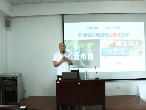 为了更好地抓住时代赋予的机遇,培养适应市场需要的创新创业人才,帮助学生拓展就业渠道、增强社会竞争力,6月9日下午,WilliamHill中文于八号教学楼418室举办职业规划暨就业指导讲座,北京中科教育集团执行总裁、齐播数创园运营总监王维刚受邀担任主讲人。齐播数创园副总裁韩超,淄博绿爽食品有限公司总经理王昆一行,WilliamHill中文院长牛书田、党委副书记姜素锦、学院辅导员以及70名学生参加讲座。