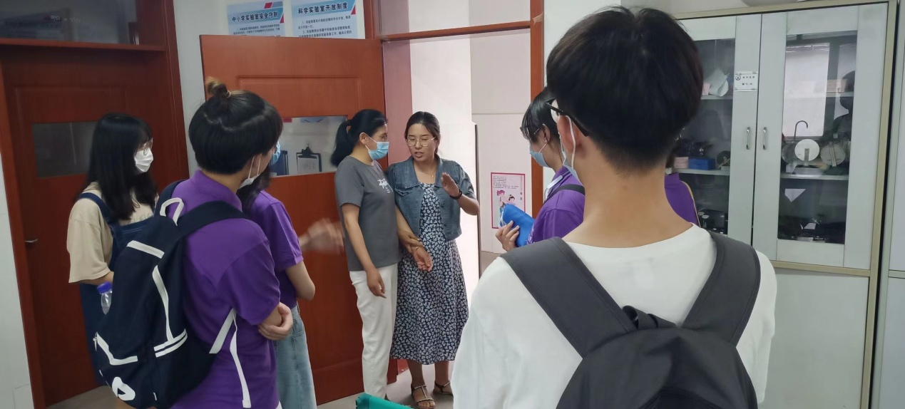 图为实践团与学校老师交流