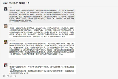 筑梦青春实践团深入挖掘黄河文化蕴含的时代价值,为讲好“黄河故事”,延续历史文脉,凝聚团队追梦中国强劲精神力量,特别开展此次“追寻黄河印记,坚定文化自信”黄河文化专题的线上学习讨论会。