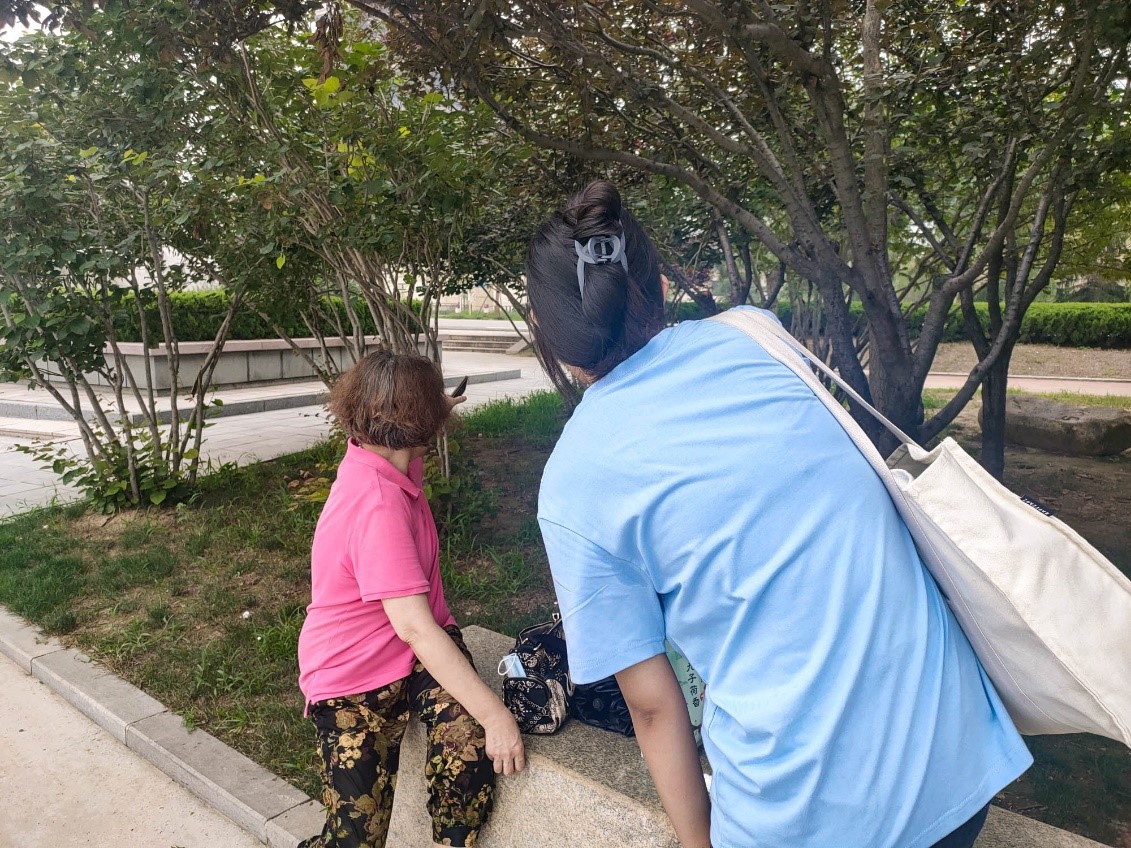 (图为实践团成员向游客采访)