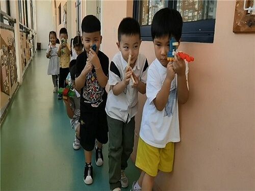 此外,实践团成员将教学和游戏相结合,采取有童趣、接地气的方式,引导孩子们在沉浸体验中多维度传承红色基因。实践团成员设计了《小红军重走长征路》等游戏。孩子们利用雪花片、插板等材料进行作战游戏,搭碉堡、搭长城、搭战壕,寓教于乐,在他们心中播下热爱祖国的种子。