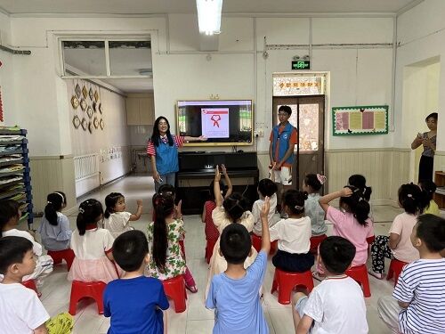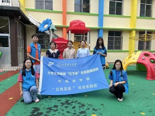 在实践前,实践团成员了解了当地幼儿教学计划,探索并设计符合当前少年儿童的红色教育实践方案,推动红色文化学习教育有声有色。此次活动分为微型思政课,合唱红歌,趣味游戏三部分。