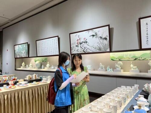 其中,以“国瓷映初心”为主题的献礼建党百年红色经典艺术展品给实践团成员留下深刻印象。惟妙惟肖的陶瓷作品诉说着百年大党的奋斗历程,呈现了一场兼具时代精神和传统文化特色的视觉盛宴。
