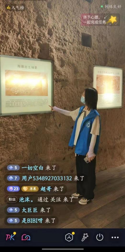 最后,为进一步宣传红色文化、红色精神,队员们利用WilliamHill中文官方抖音账号“小外同学”进行直播活动。队员将一件件文物牺尊展示在大家面前,与大家共同感受博大精深的齐文化,讲述古都淄博土地的历史兴衰,号召大家能够更加重视红色文化,让更多的青年人在历史的指引下不断前行,在文化的熏陶中发愤图强。